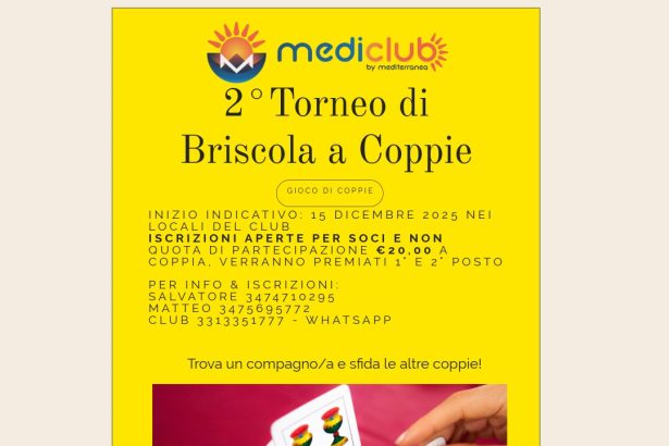 Info Data indicativa di inizio torneo: 15 dicembre 2025 presso i locali del club.Iscrizioni aperte per soci e non!Quota di…